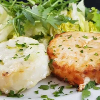 Hamburger con salmone dei fiordi Norvegesi e crema di patate,, hamburger di seppia e insalata lattughino.